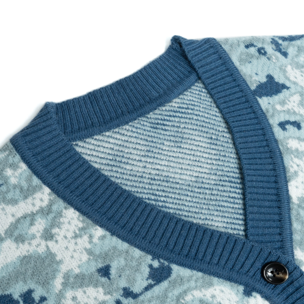 Gauge defines the fineness of a knit. A 12-gauge knit delivers a lightweight, refined surface ideal for layering, while a 7-gauge knit provides a chunkier, more textured appearance suited for winter-focused collections. Understanding this distinction is essential when designing a mens cardigan sweater that meets seasonal and market expectations.
