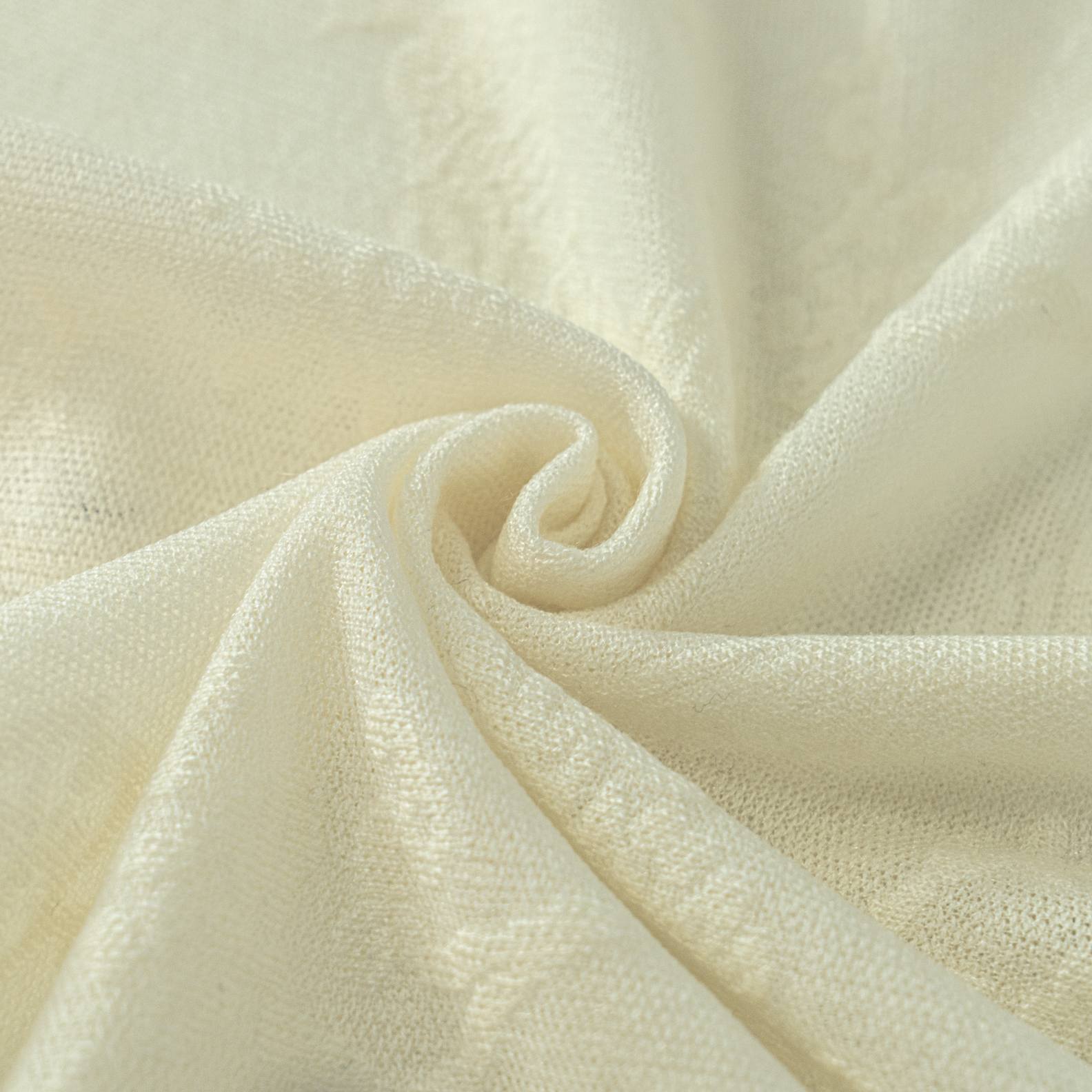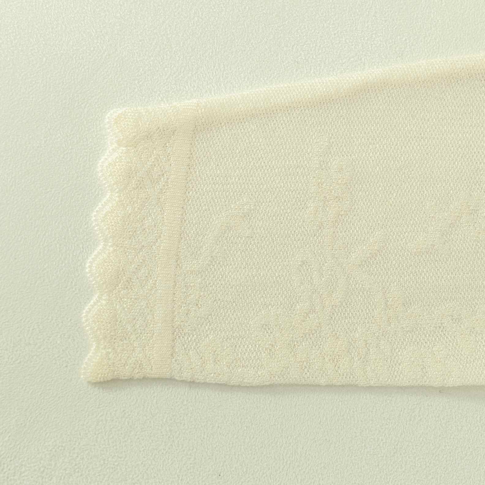 An elegant wool knit cardigan in ivory, featuring a delicate all-over lace floral texture. Detailed with a round neck, scalloped edges, and tonal buttons for a refined feminine silhouette.