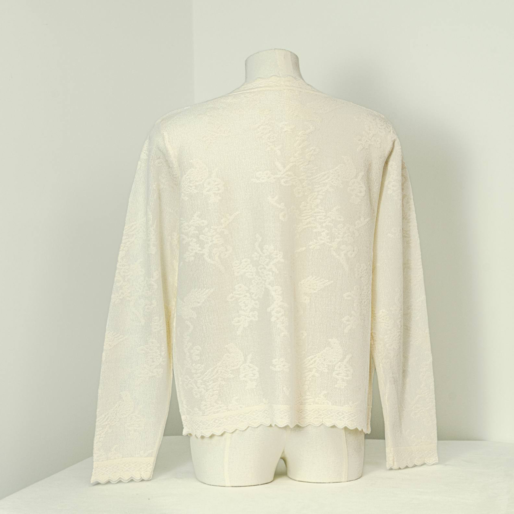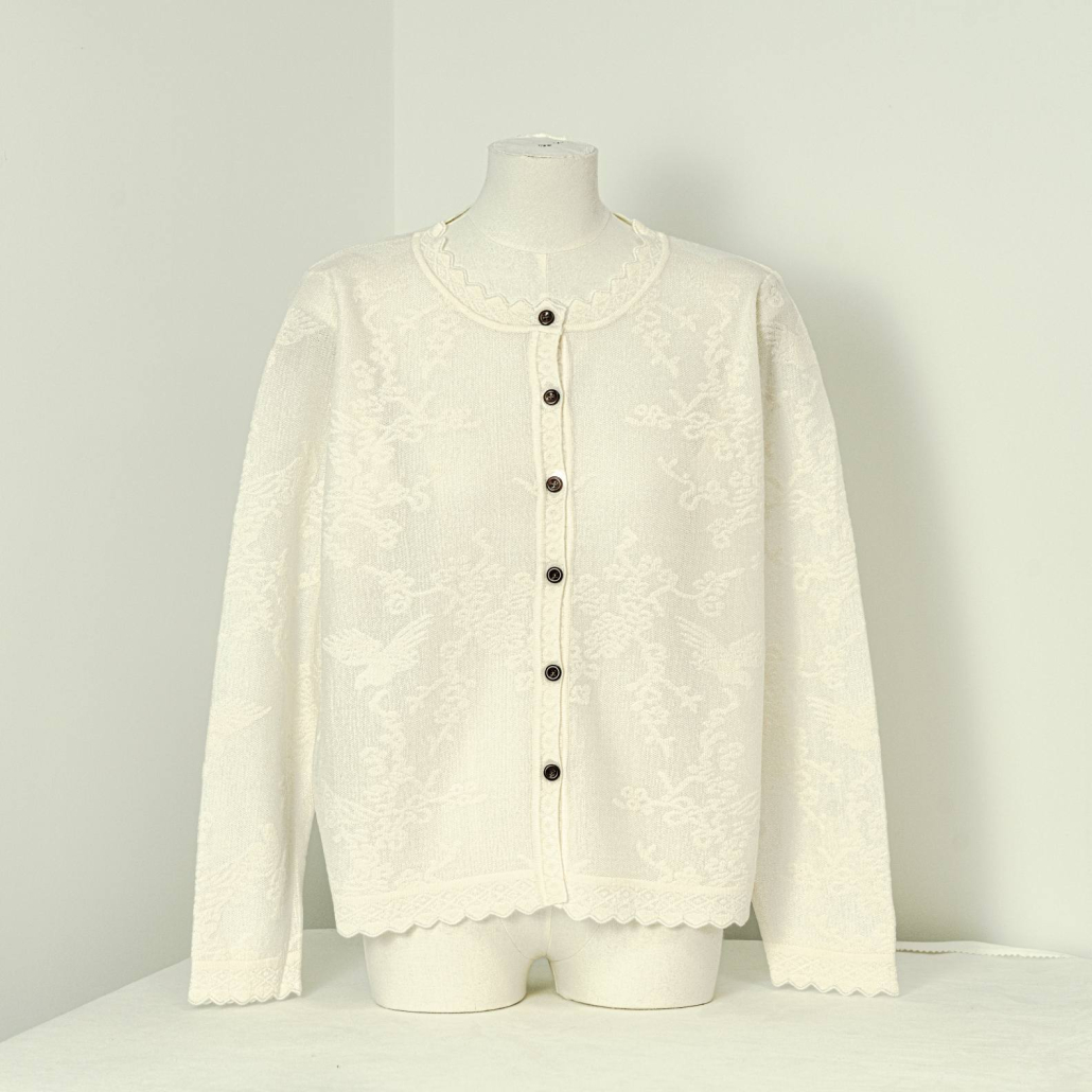 Cardigan Wool Round Neck Long Sleeve Scalloped lace texture Style