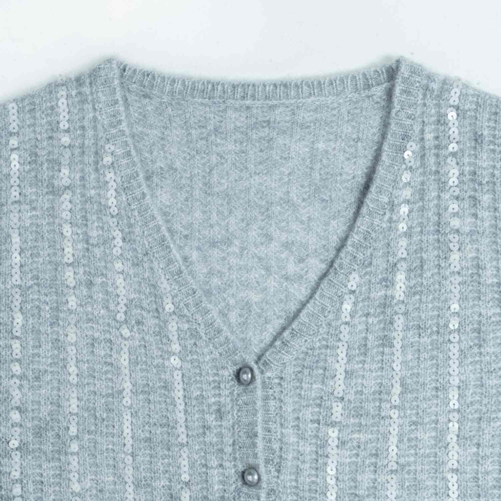 Cardigan Wool V-Neck Long Sleeve Vertical sequin stripe Style