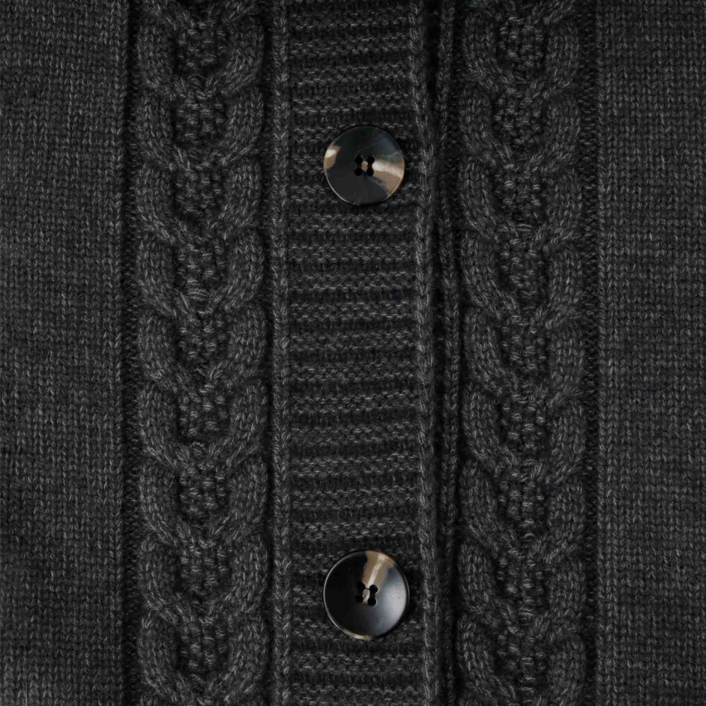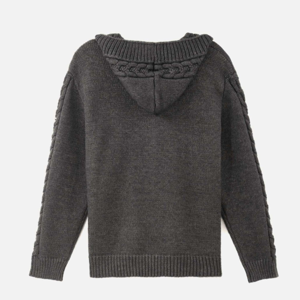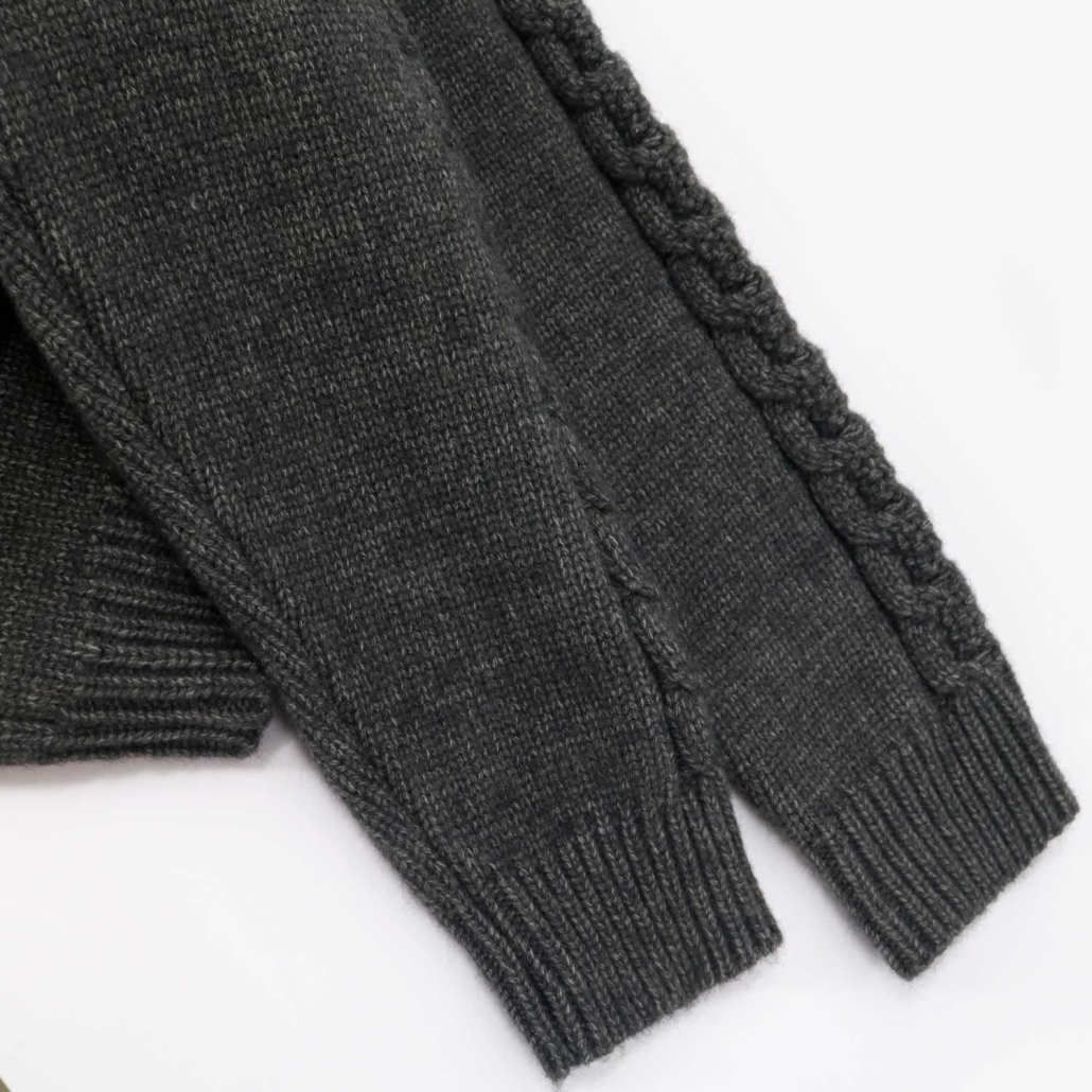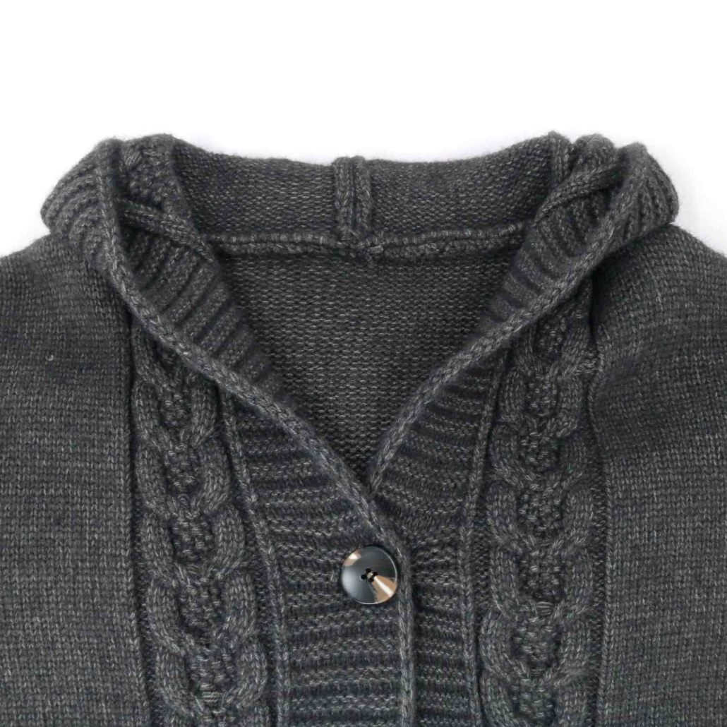This knit cardigan is crafted from high-quality wool yarn and features a classic V-neck design with a full button front. The cable knit texture on the front panels adds depth and a strong vintage character, while the long sleeves provide warmth and structure. Perfect for autumn and winter collections, this style is ideal for bulk orders, OEM/ODM customization, and private label knitwear production.