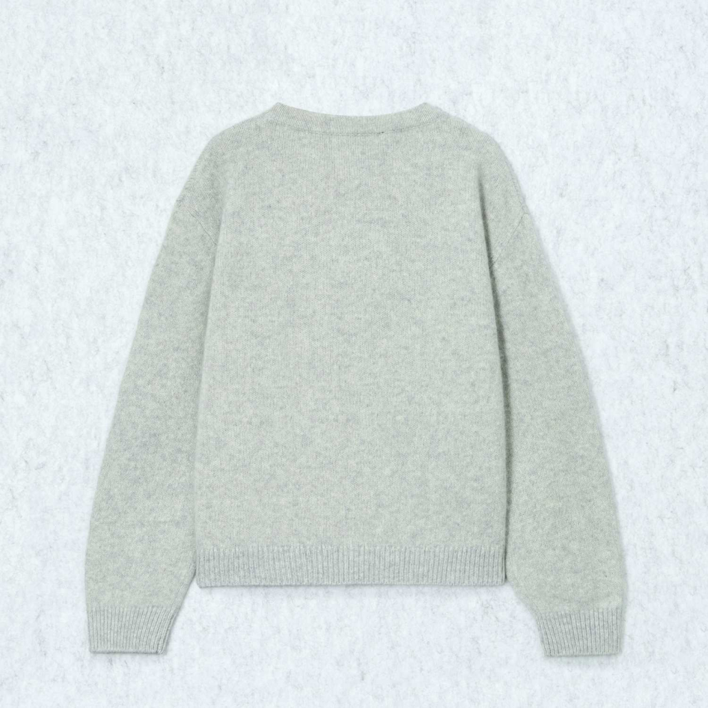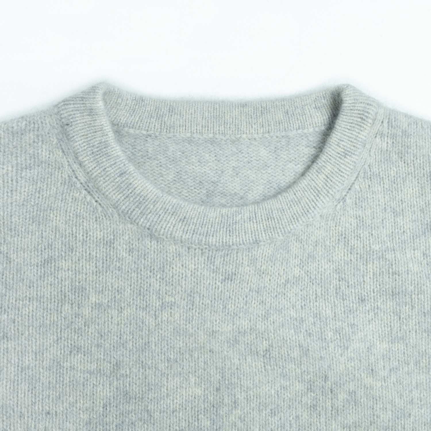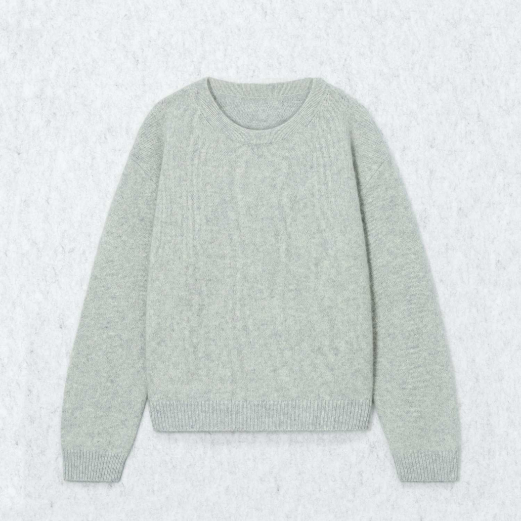 A classic wool knit sweater in a versatile light grey heather. Featuring a comfortable crewneck, long sleeves, and a clean minimalist design with ribbed edges for a timeless look.