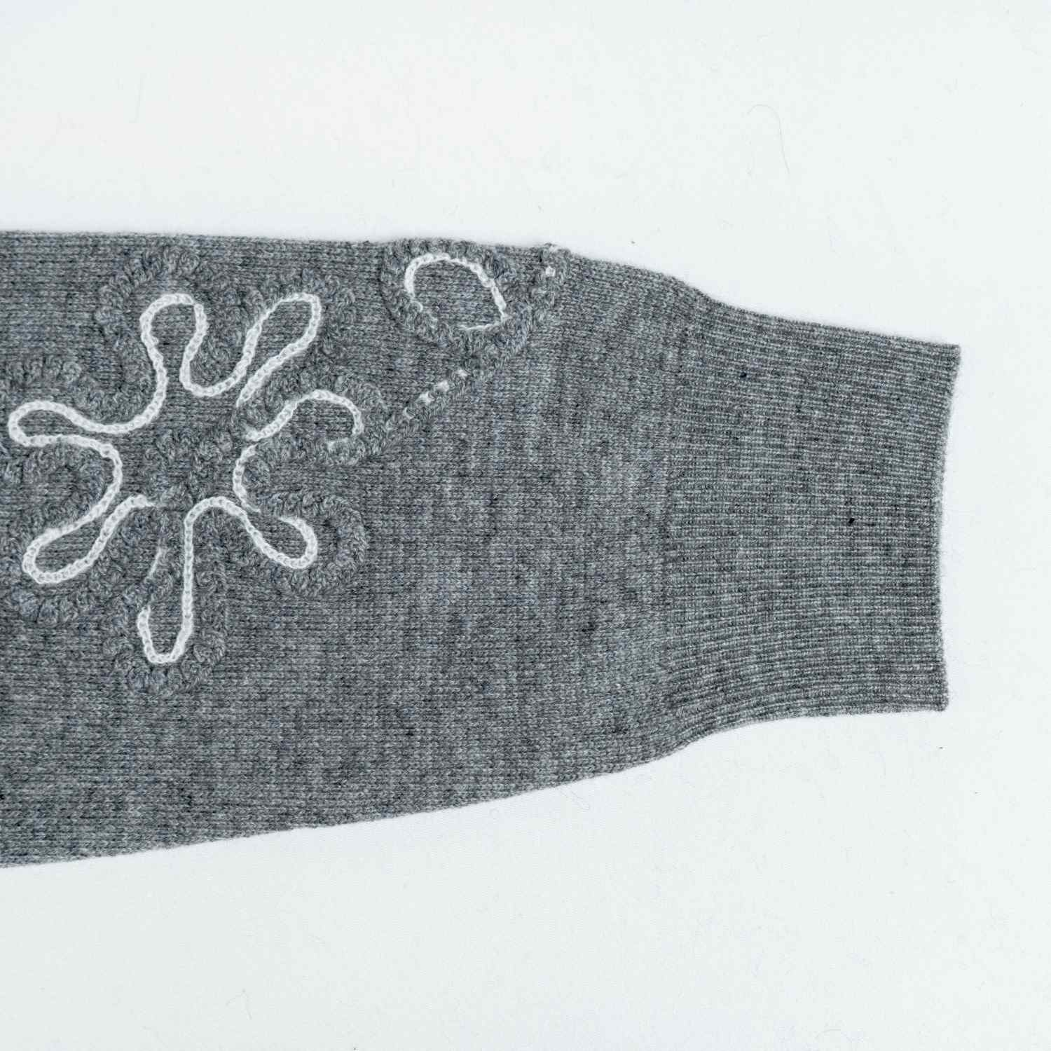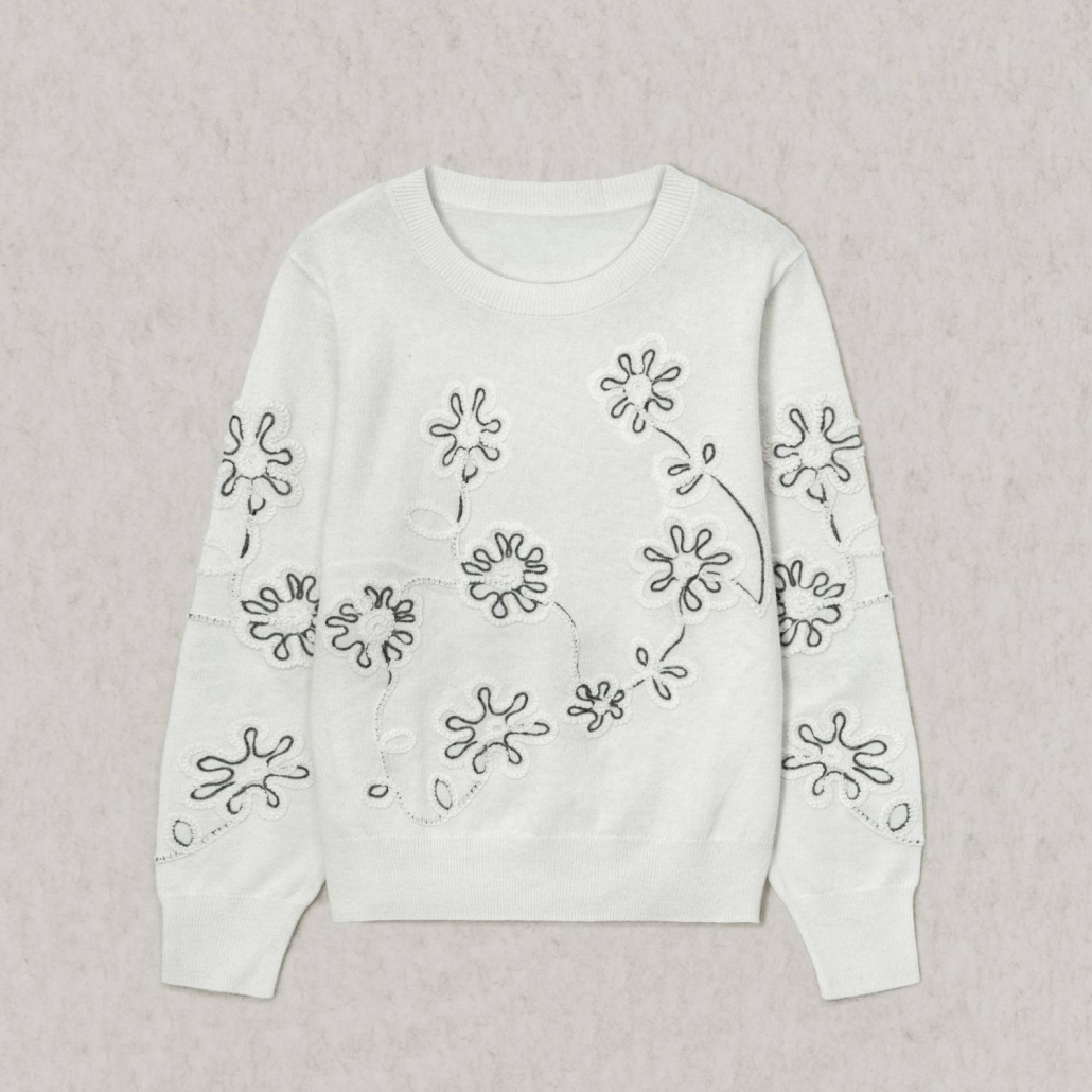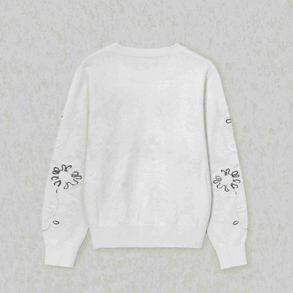 Knit Sweater Wool Crewneck Long Sleeve White wire floral embroidery Style