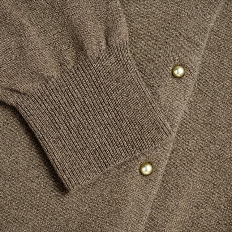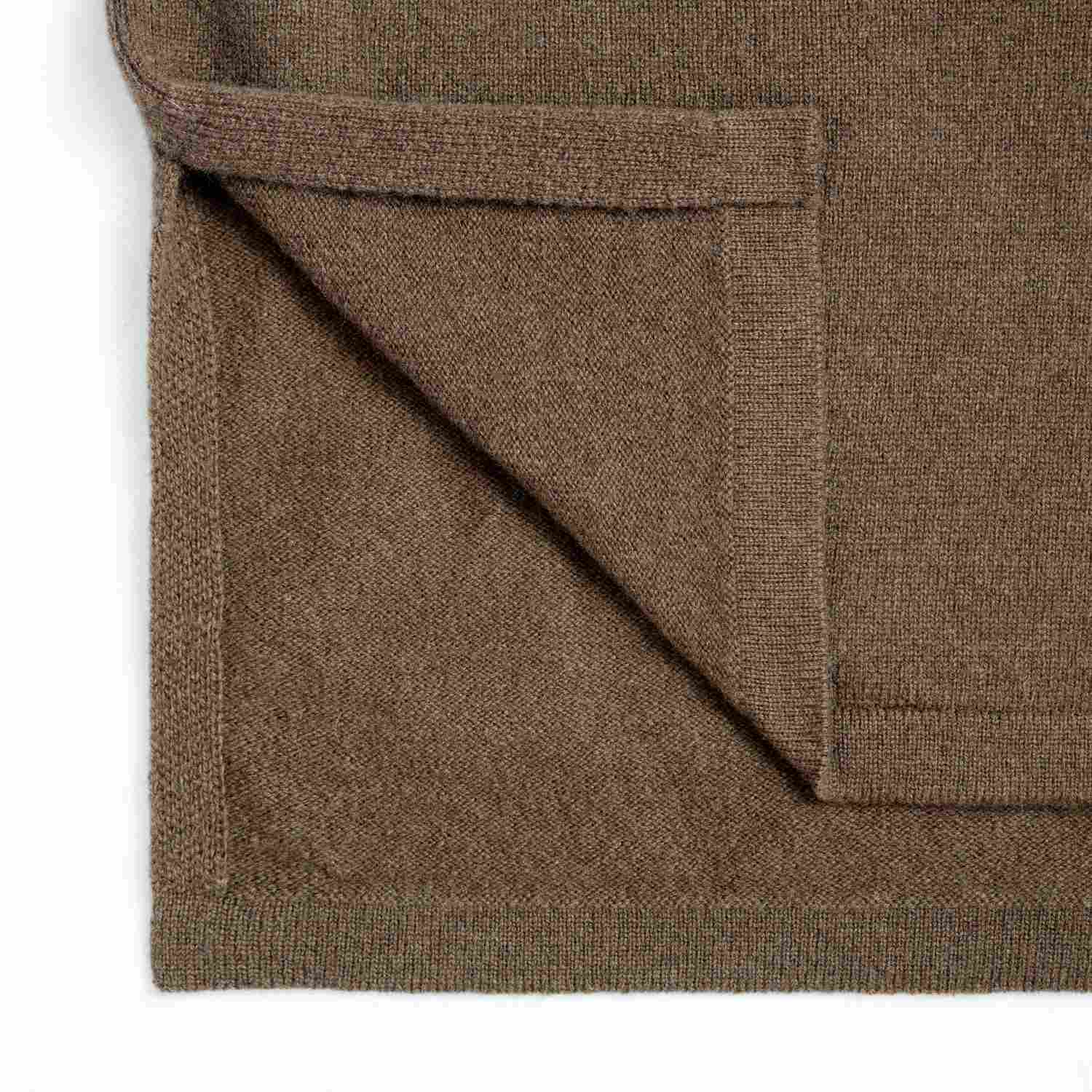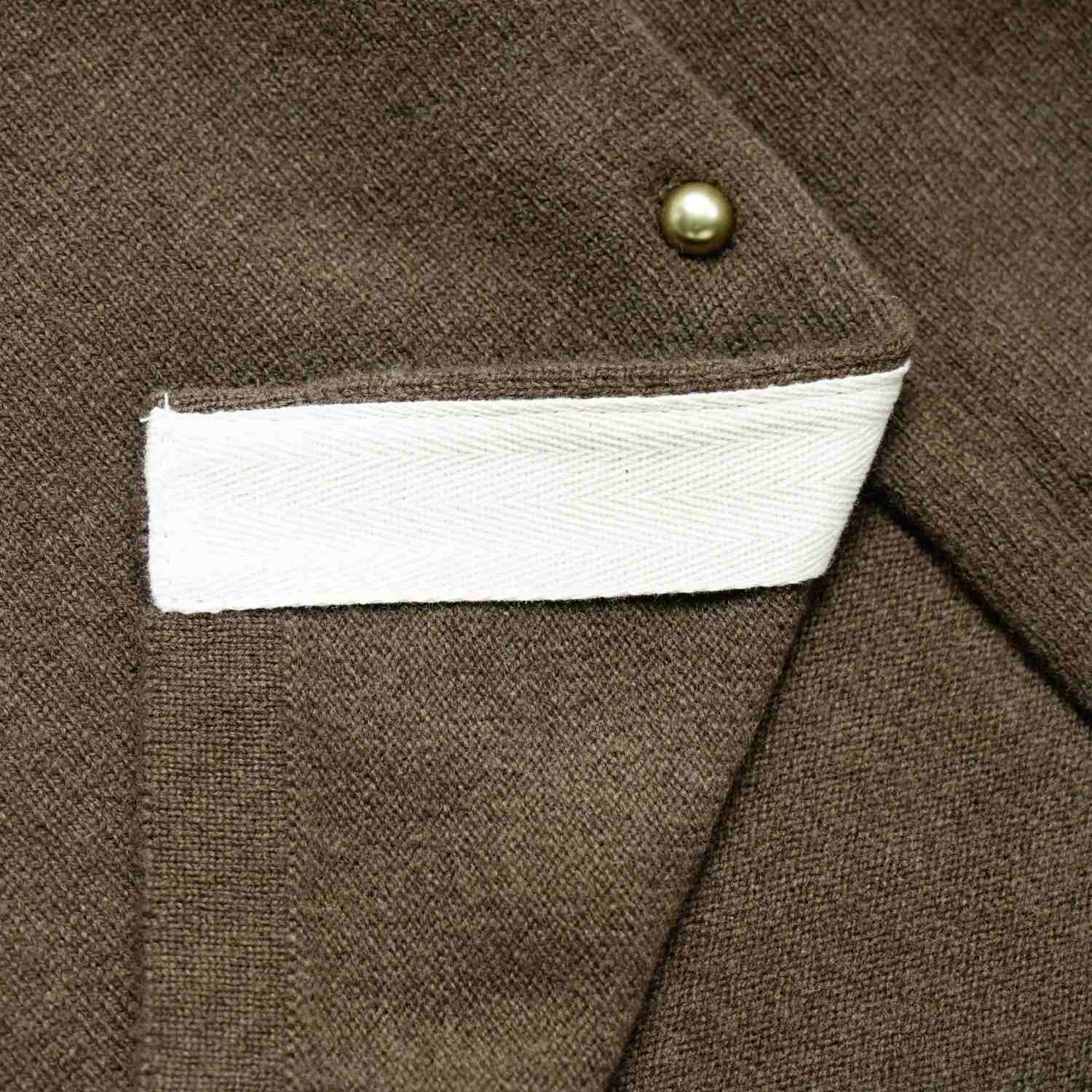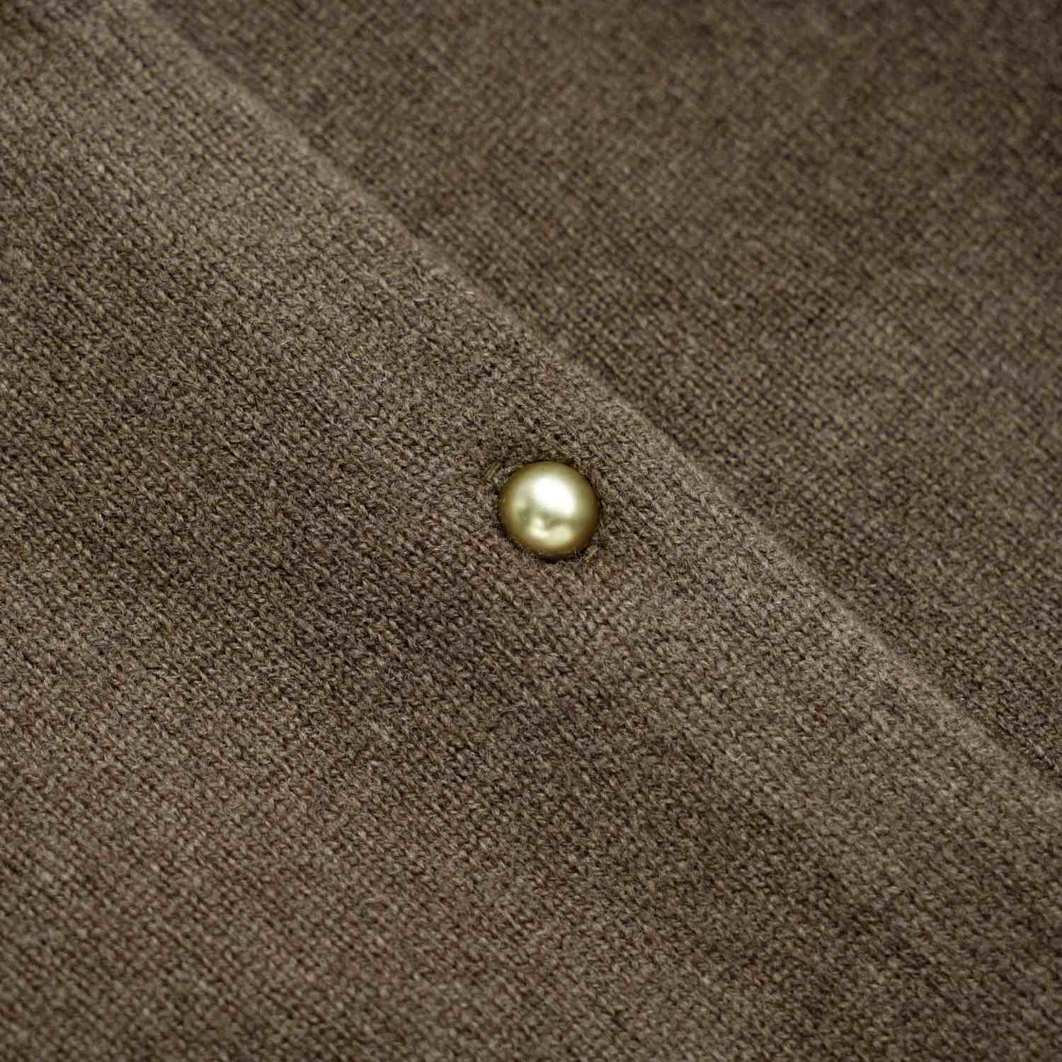 A versatile wool knit polo sweater in deep brown. Features a classic polo collar, button-front closure, and a modern high-low hem with side slits.