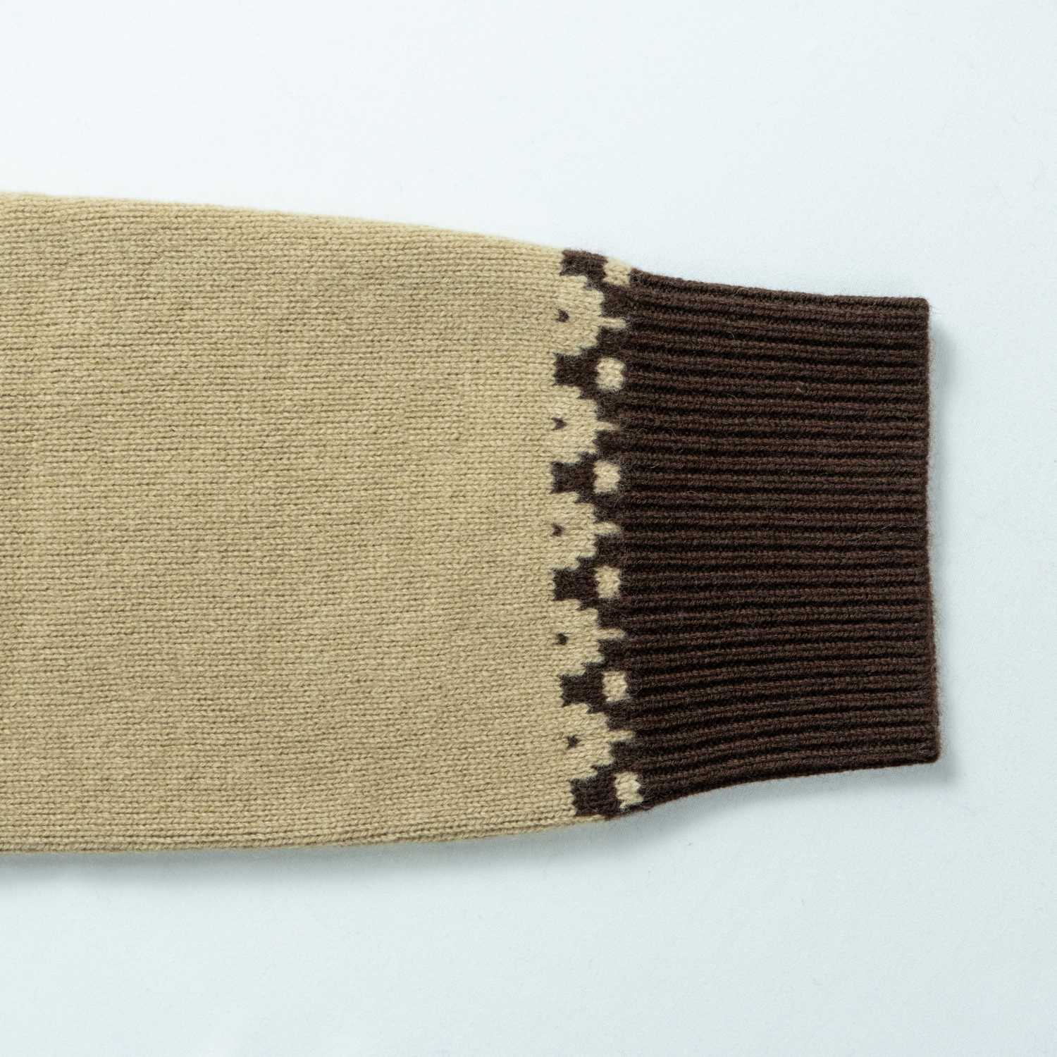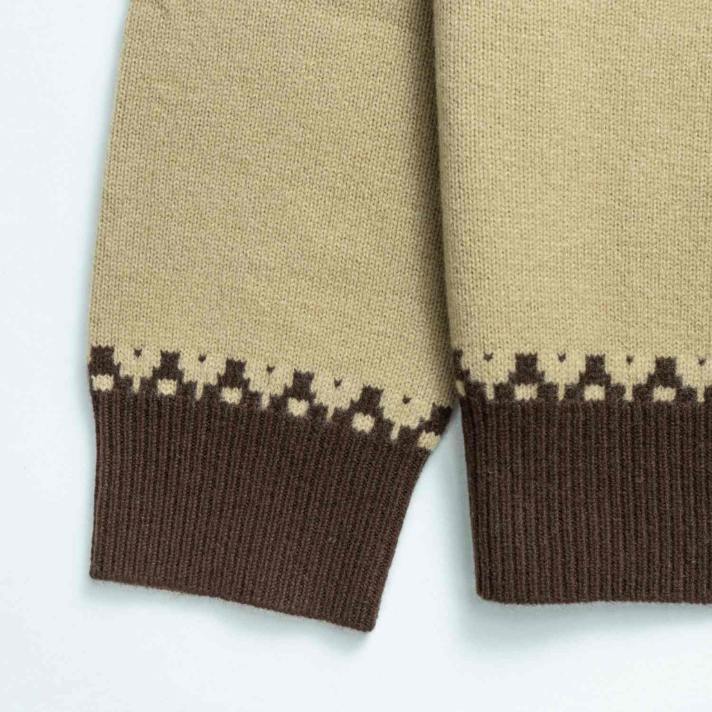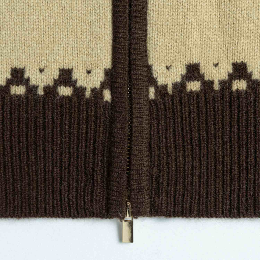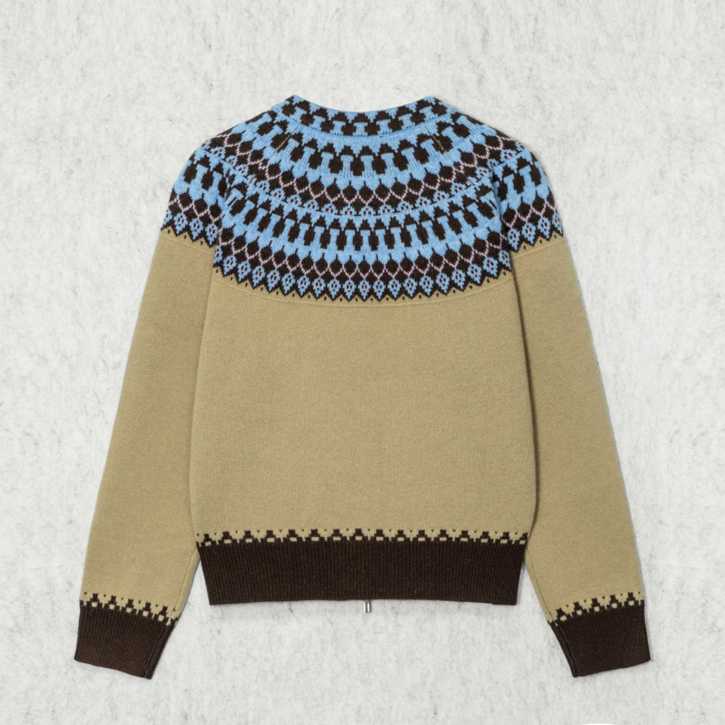Zip Cardigan Wool Round Neck Long Sleeve Fair Isle pattern contrast trim Style